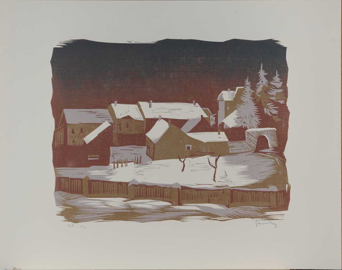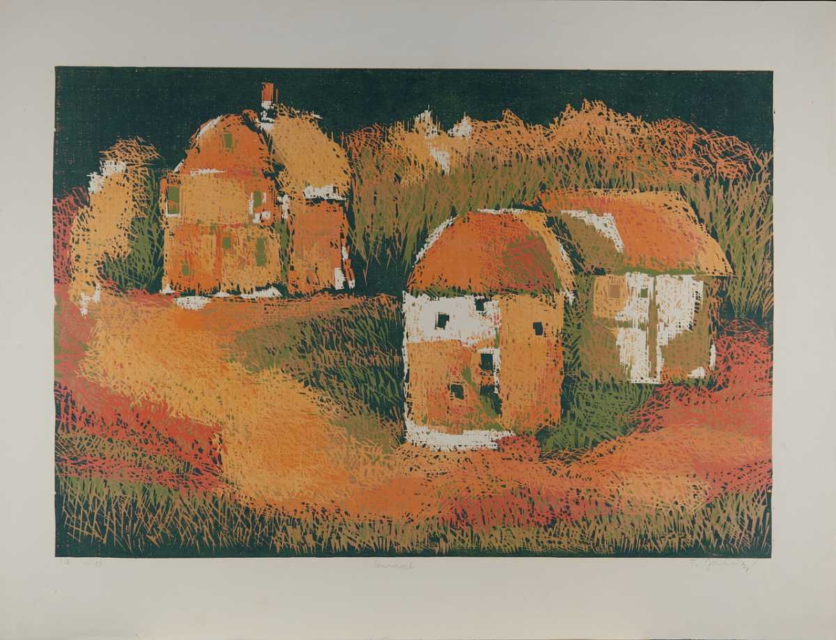 Farbholzschnitt, 65x85, Dorf III, Nr.: 108