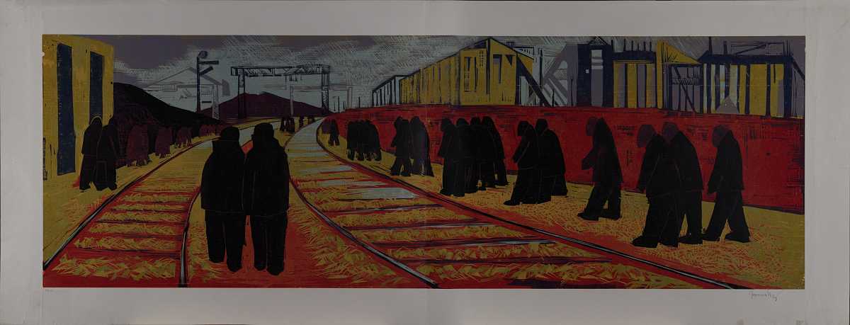 Farbholzschnitt, 65x150, Arbeitsschluss, Nr.: 026A
