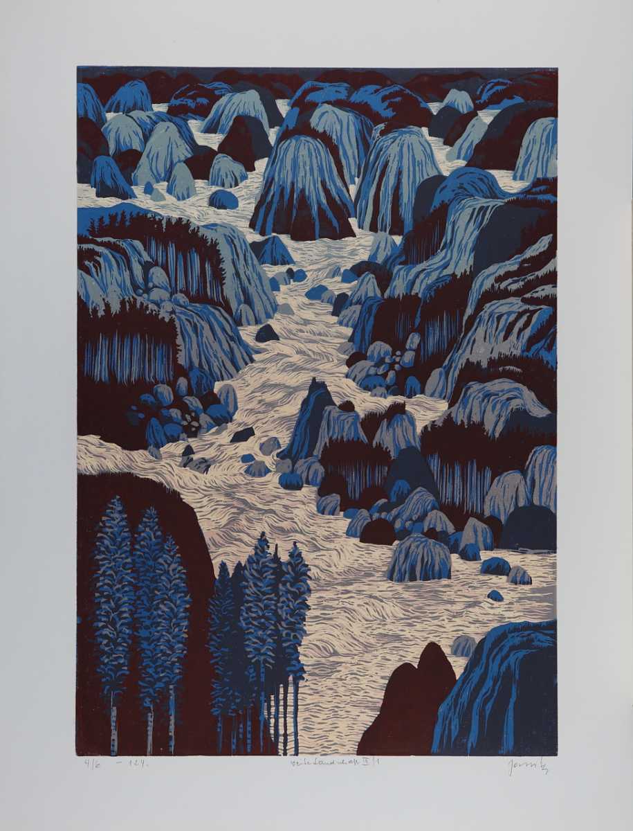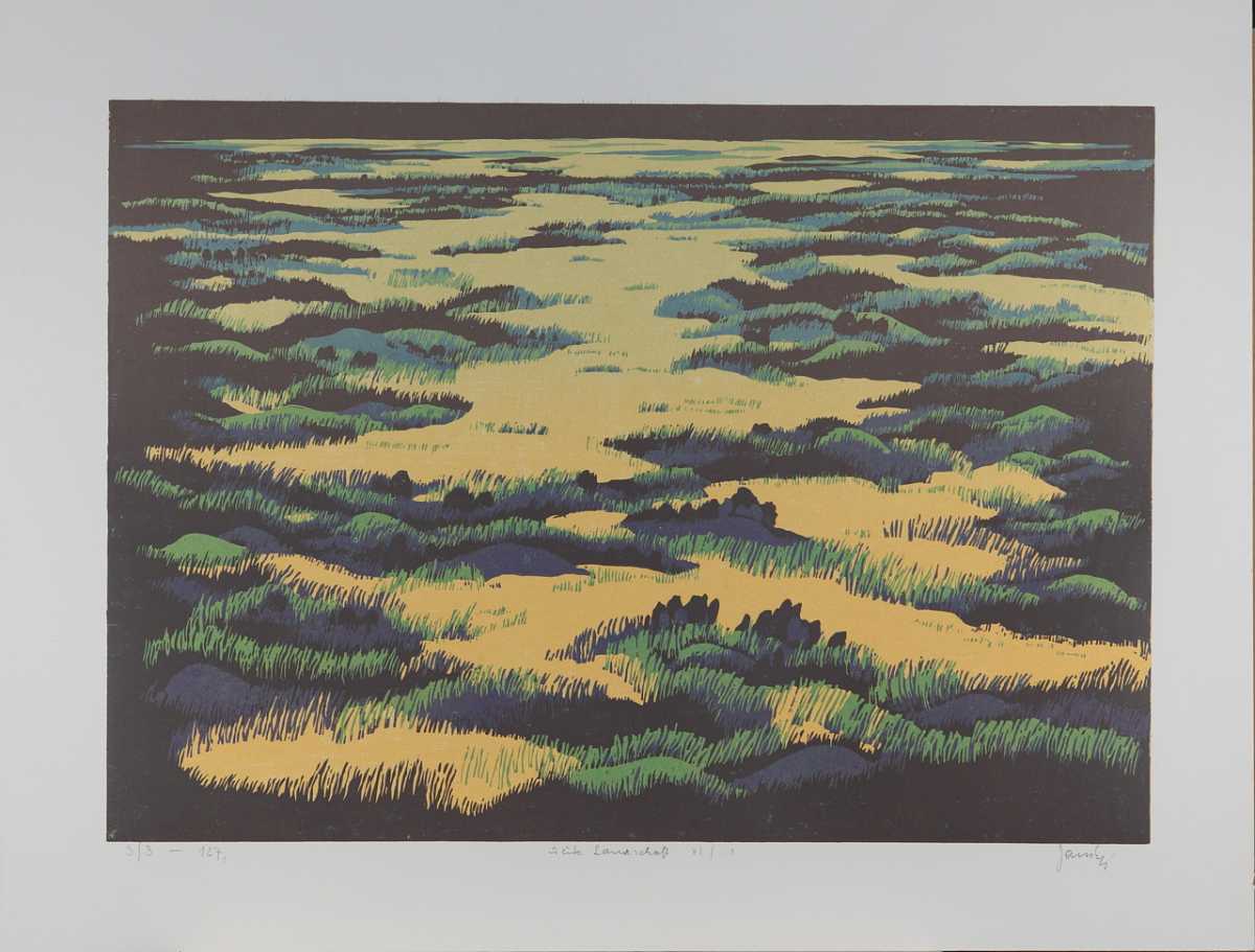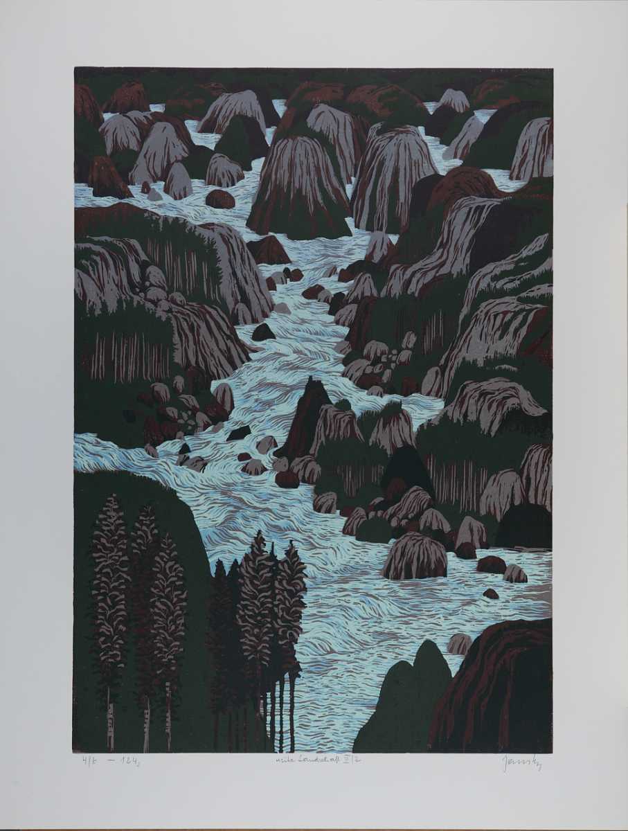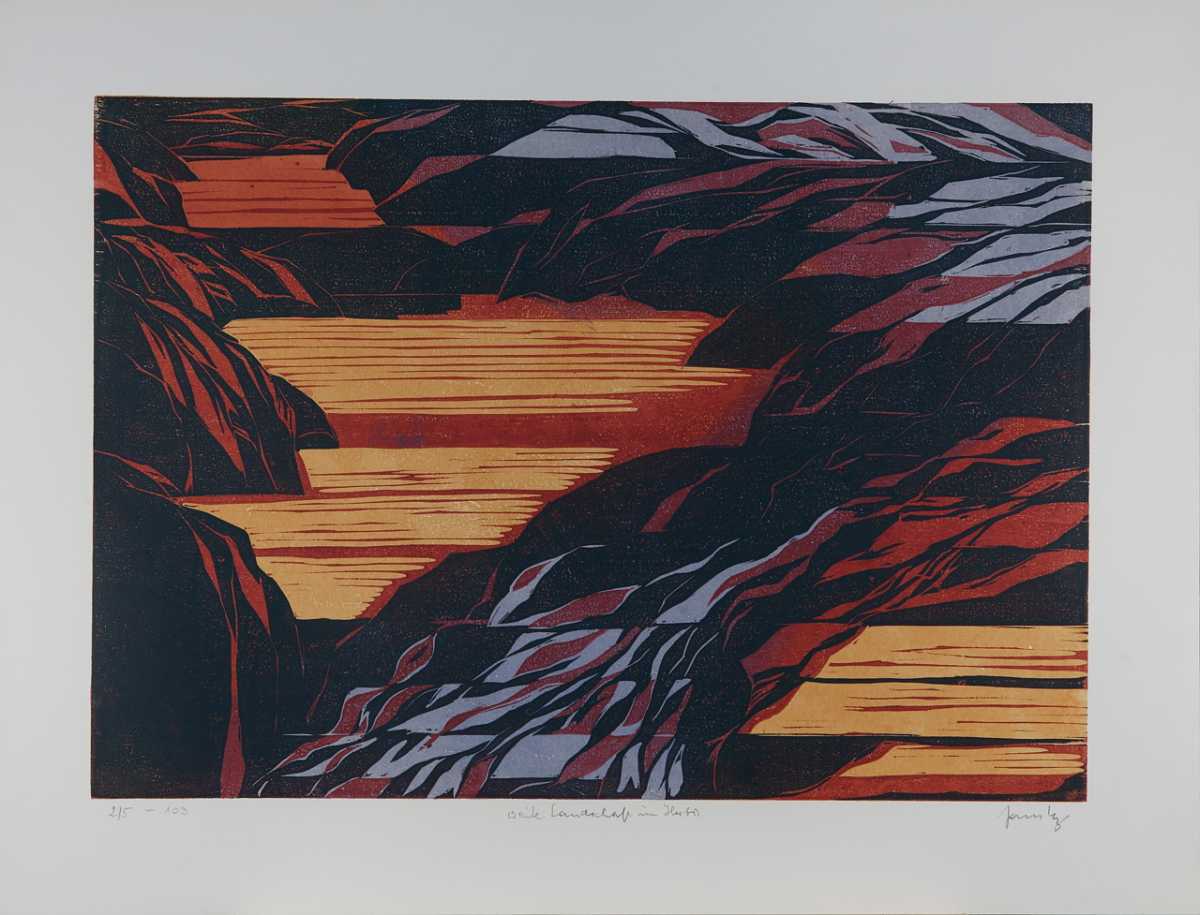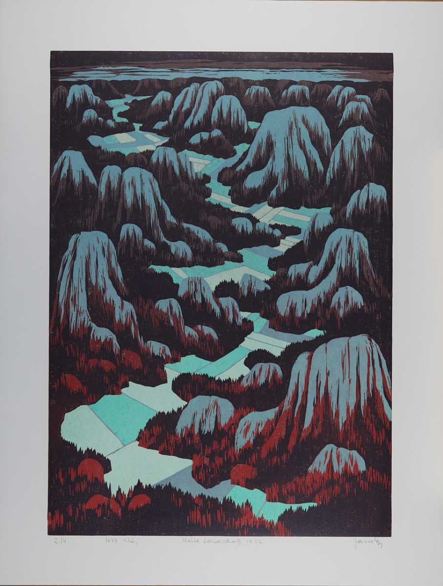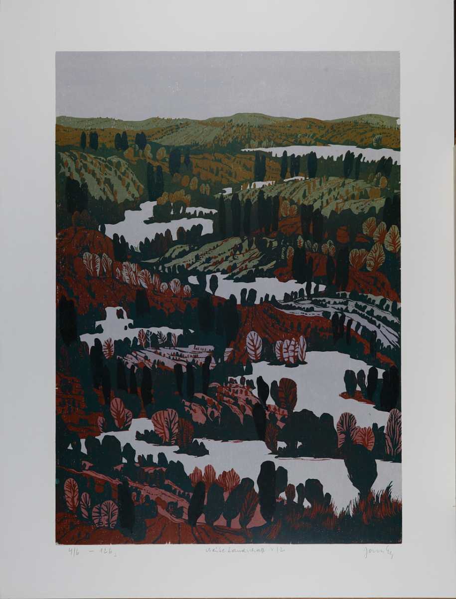 Farbholzschnitt, 85x65, Bewegte Landschaft, Nr.: 075