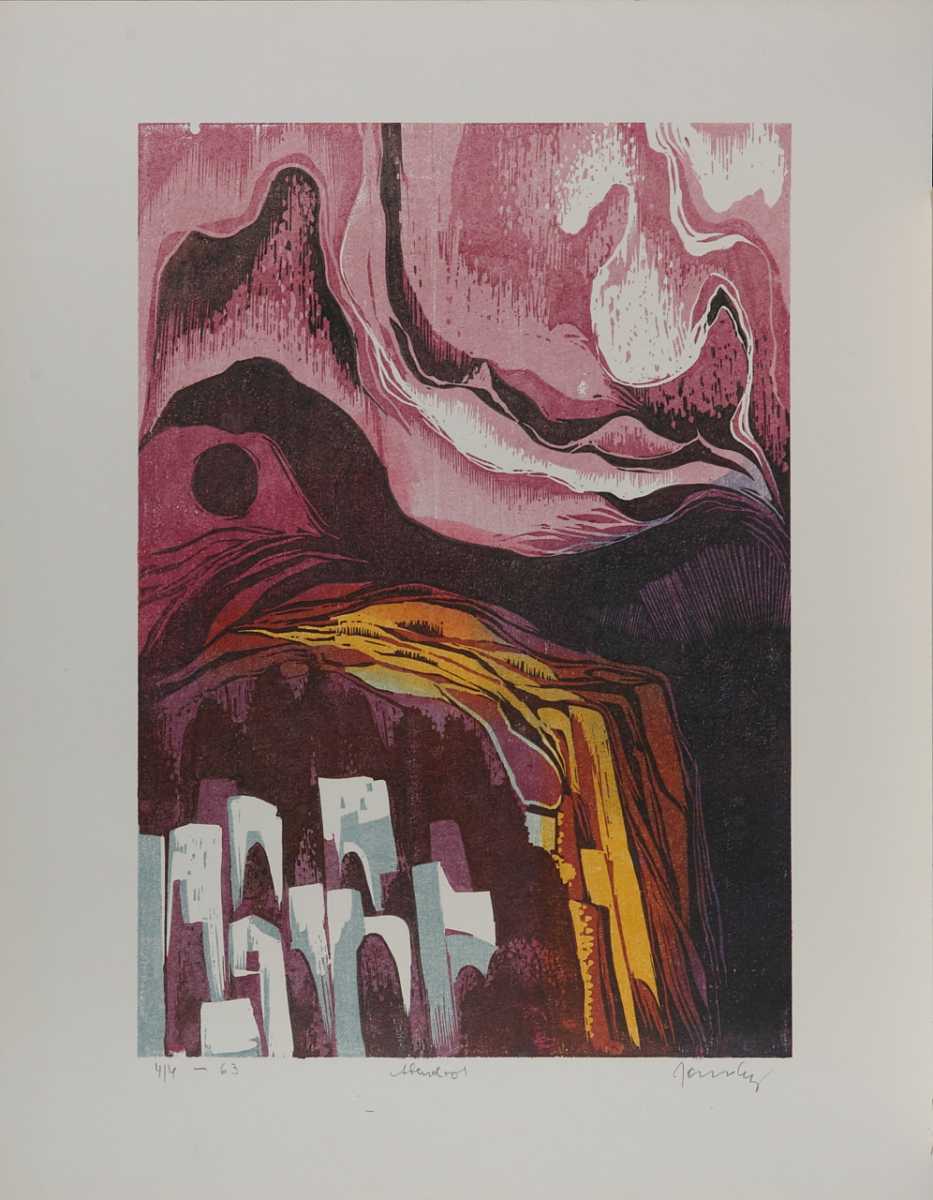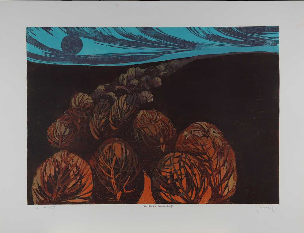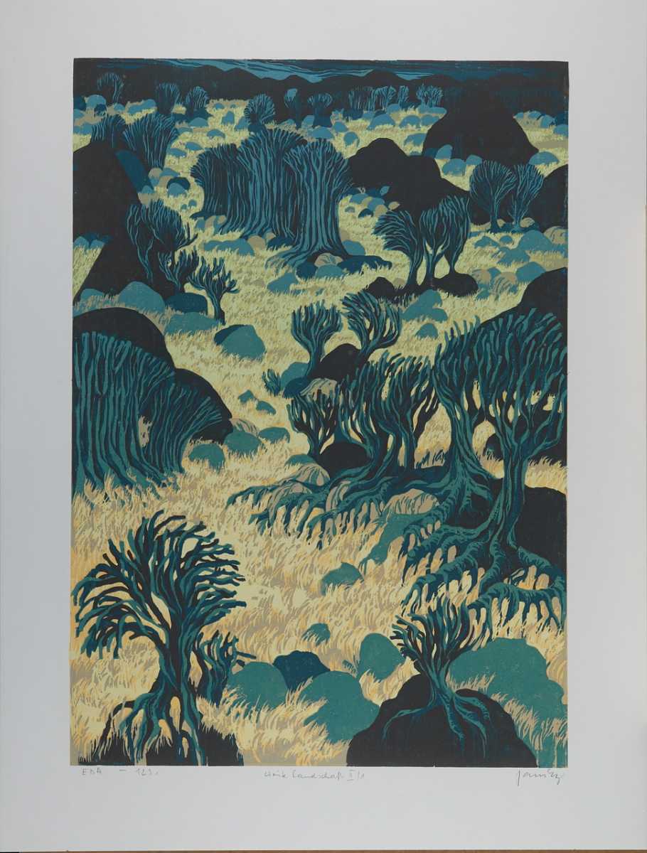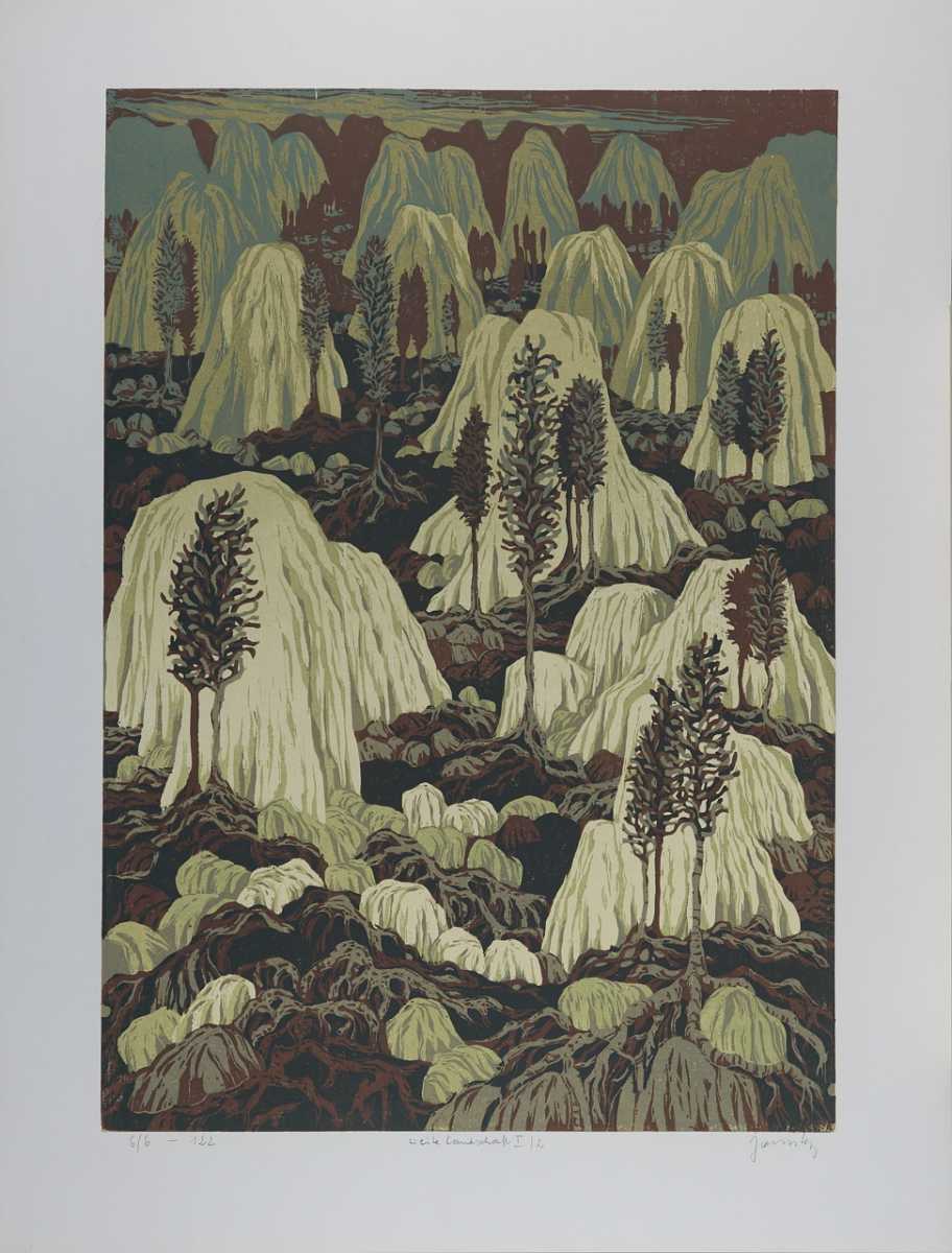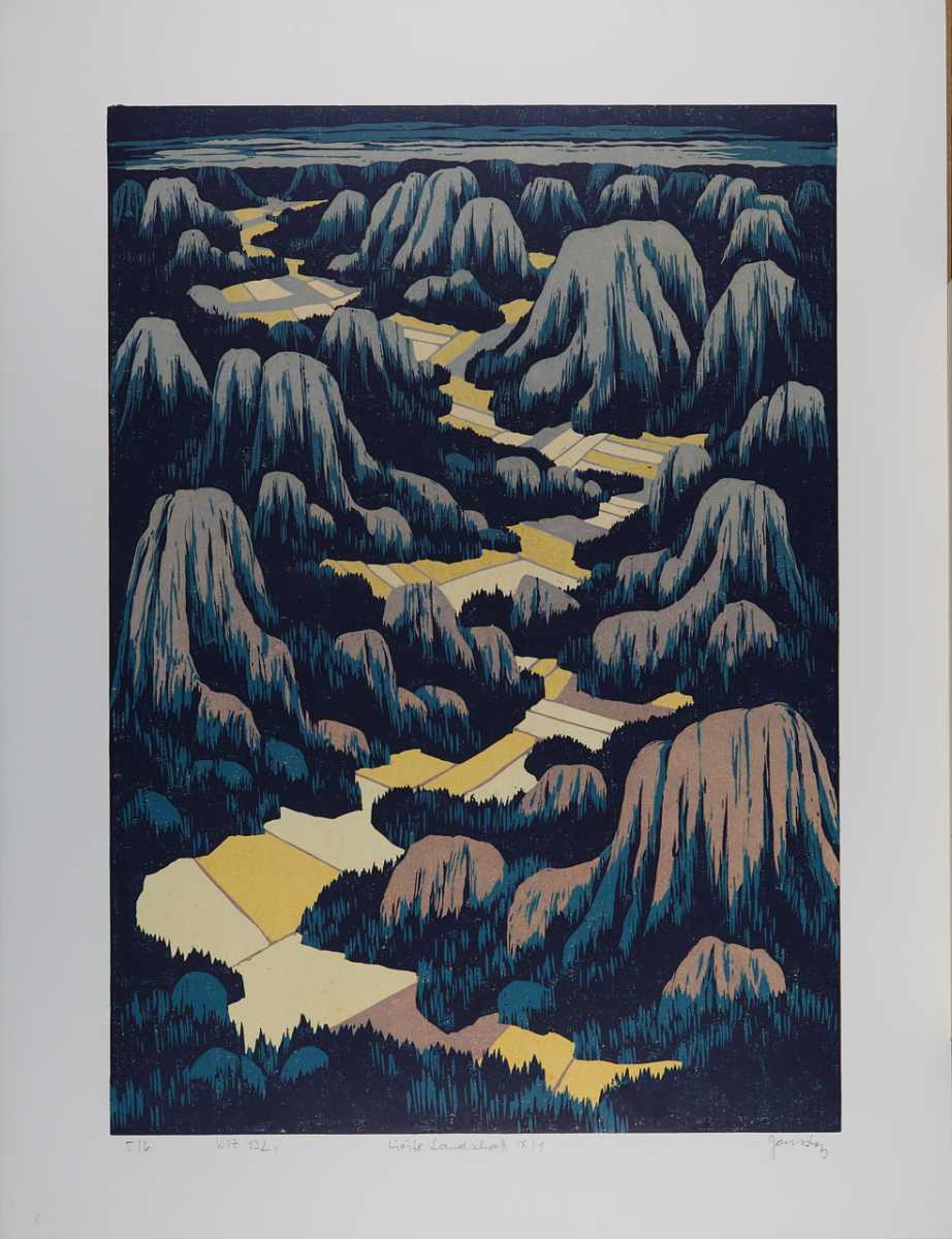 Farbholzschnitt, 85x65, Bewegte Landschaft, Nr.: 075