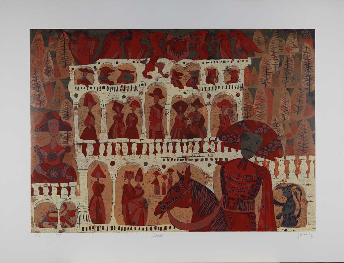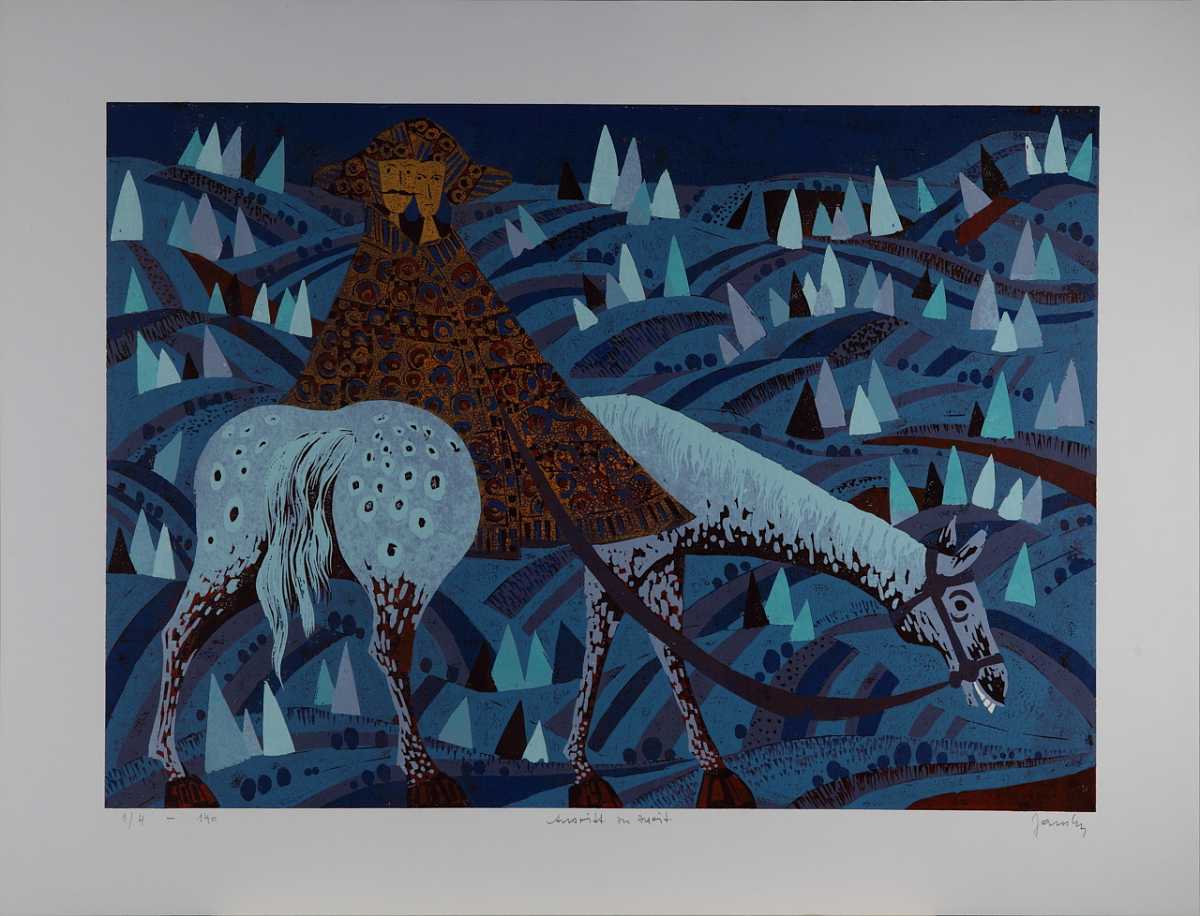 Farbholzschnitt, 65x85, Ausritt zu Zweit, Nr.: 140