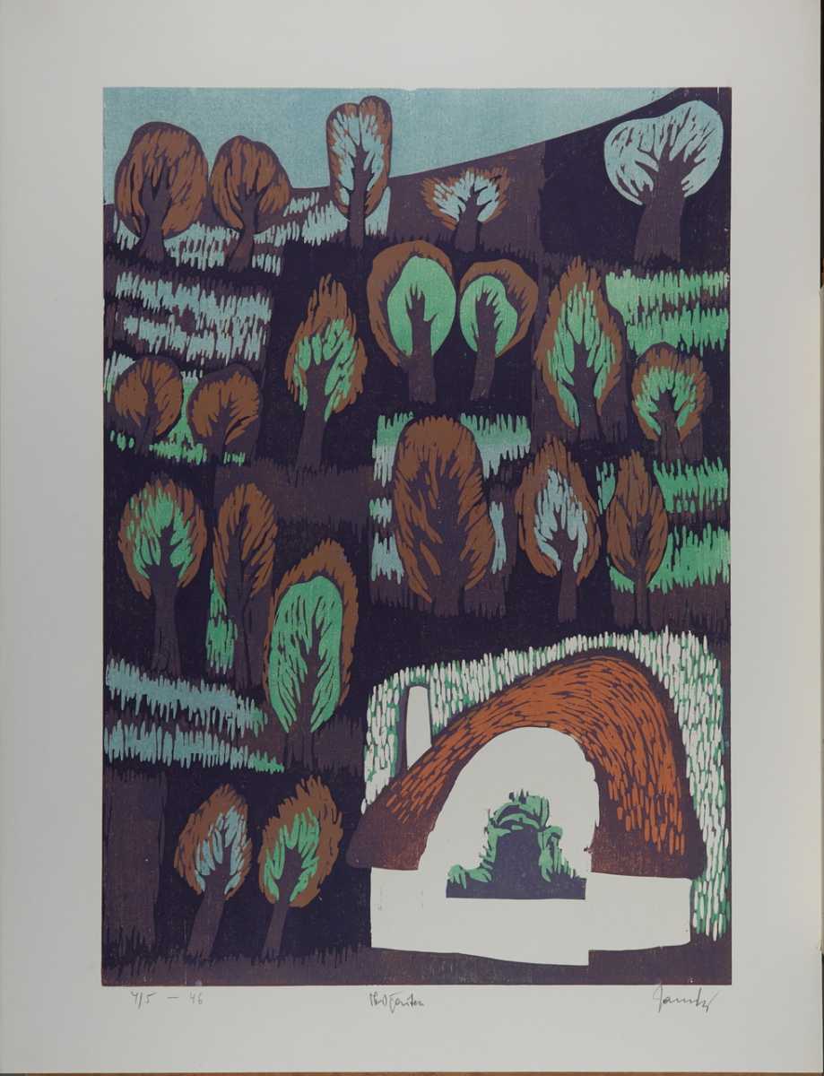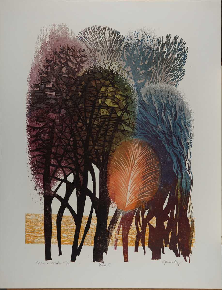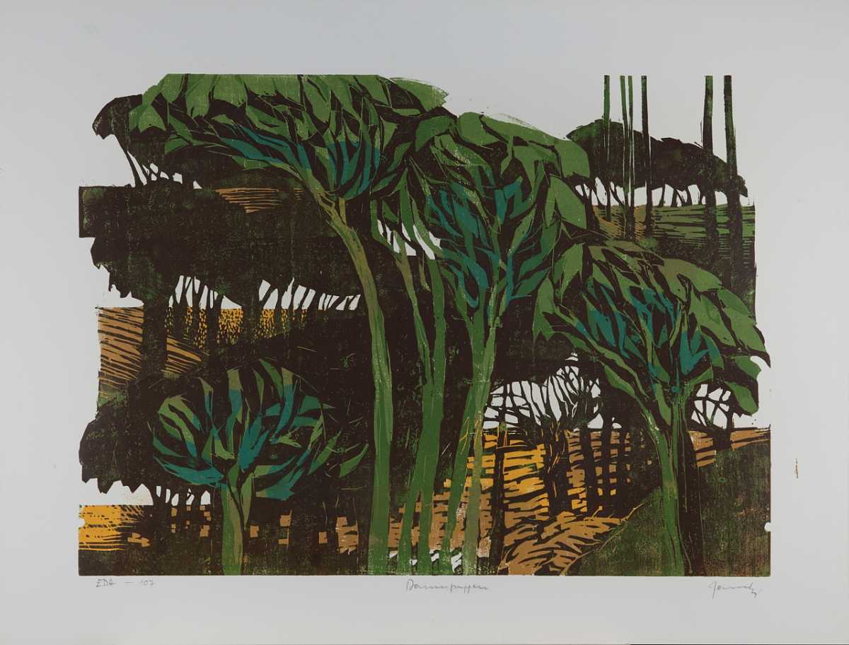 Farbholzschnitt, 65x85, Baumgruppen, Nr.: 107