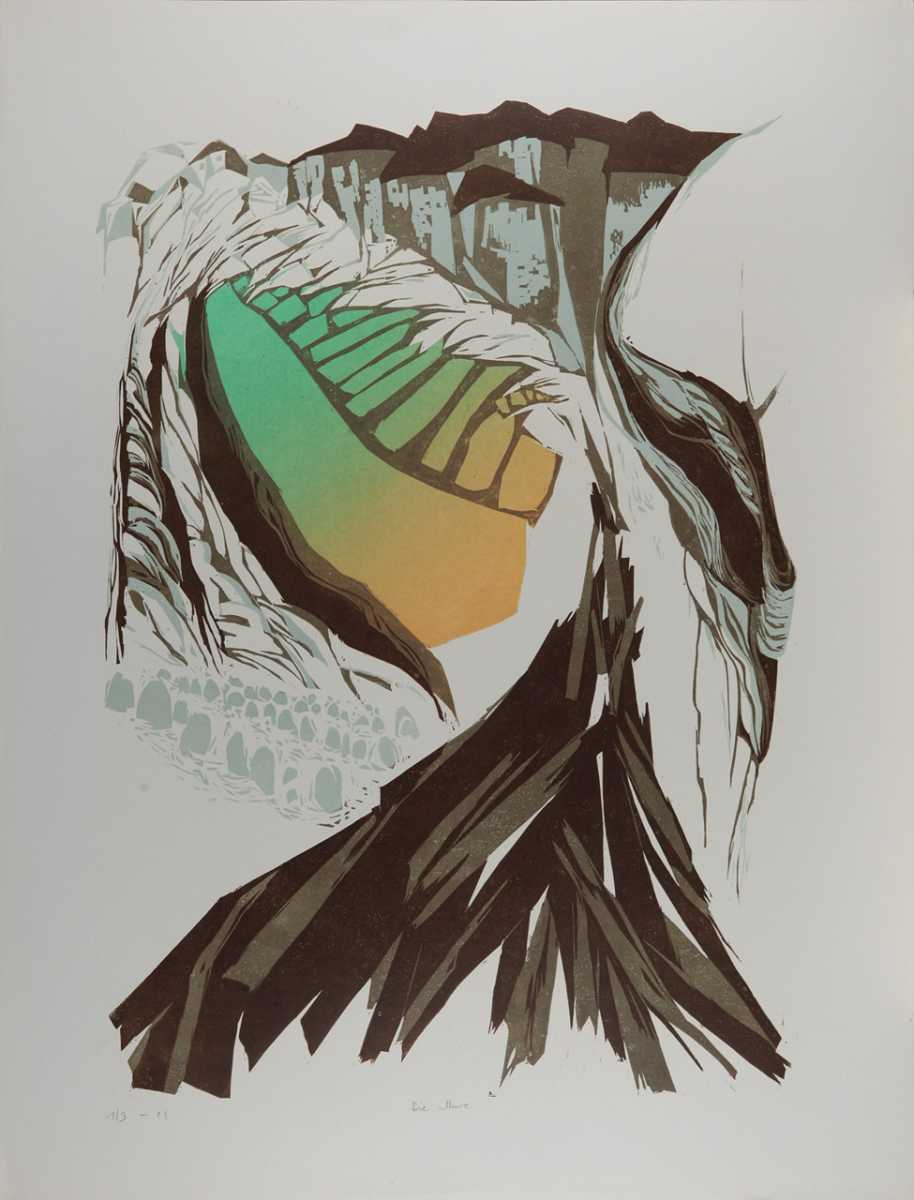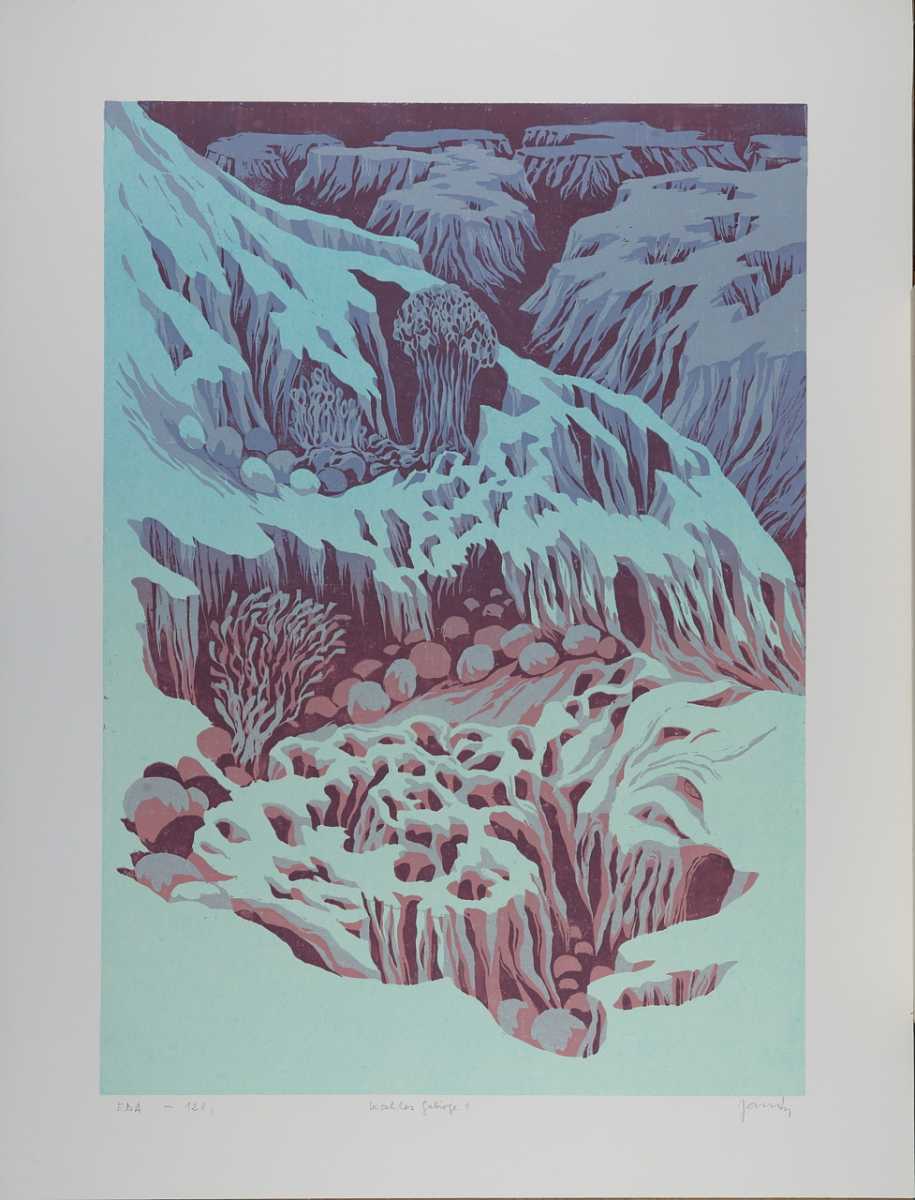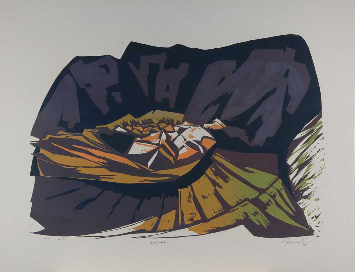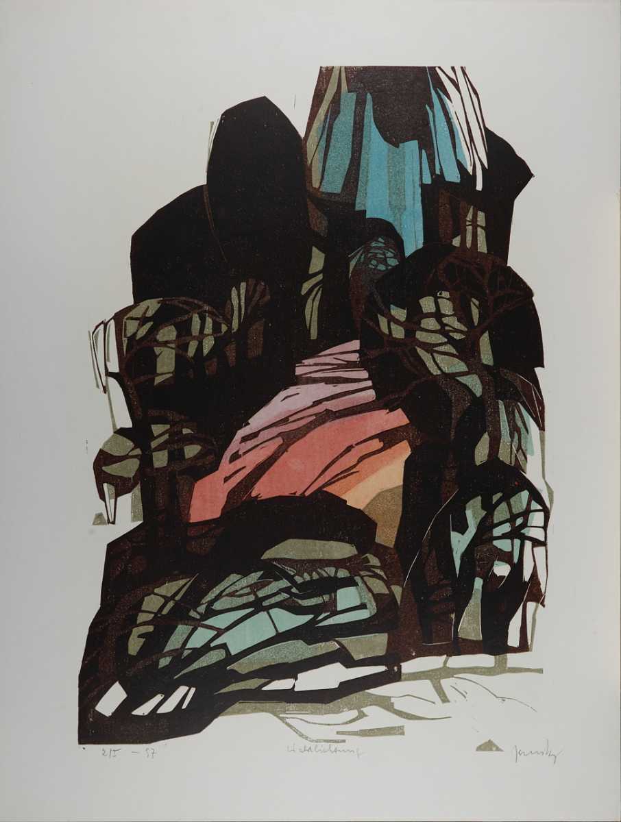 Farbholzschnitt, 85x65, Fels, Nr.: 036