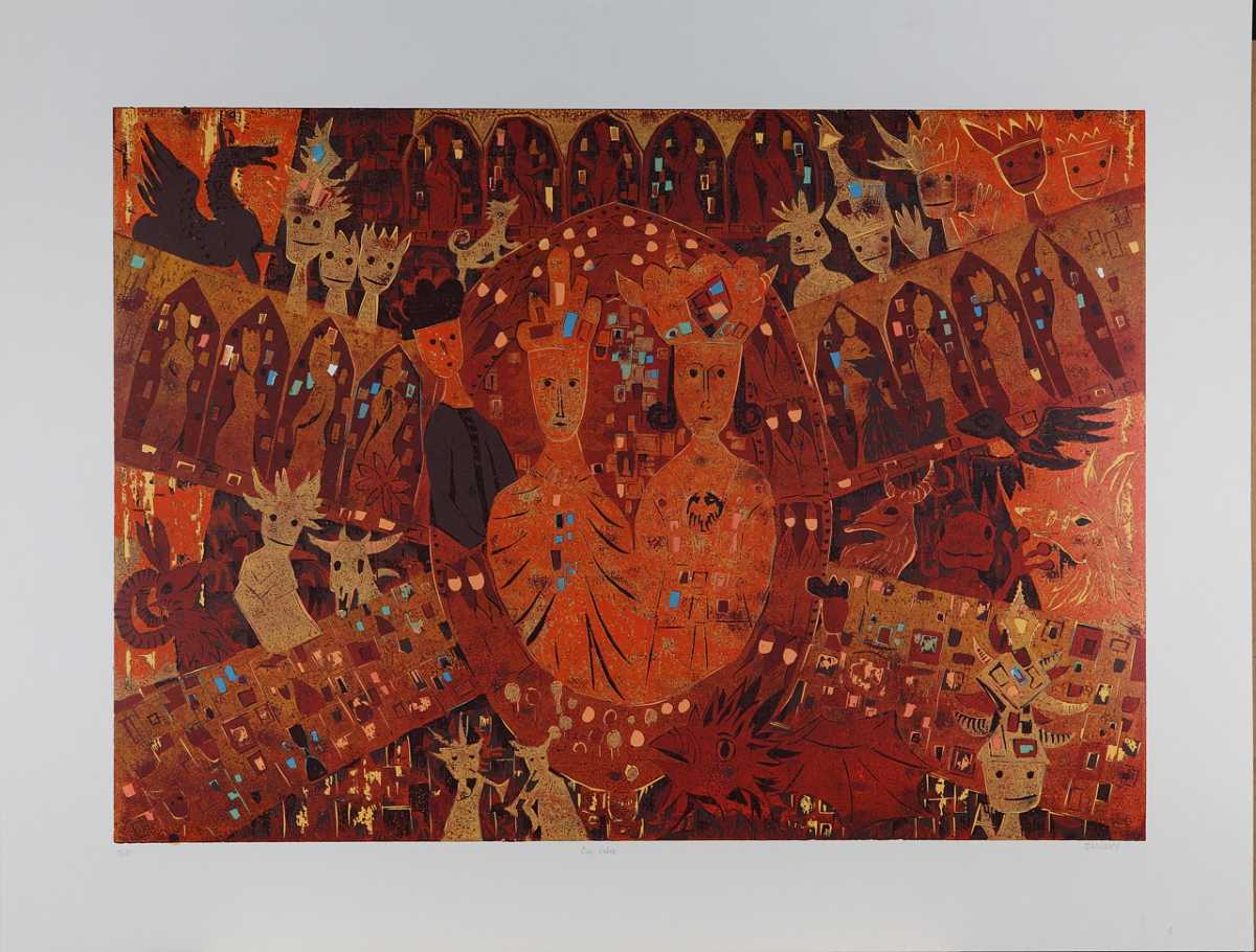Farbholzschnitt, 85x65, Brautpaar I, Nr.: 047