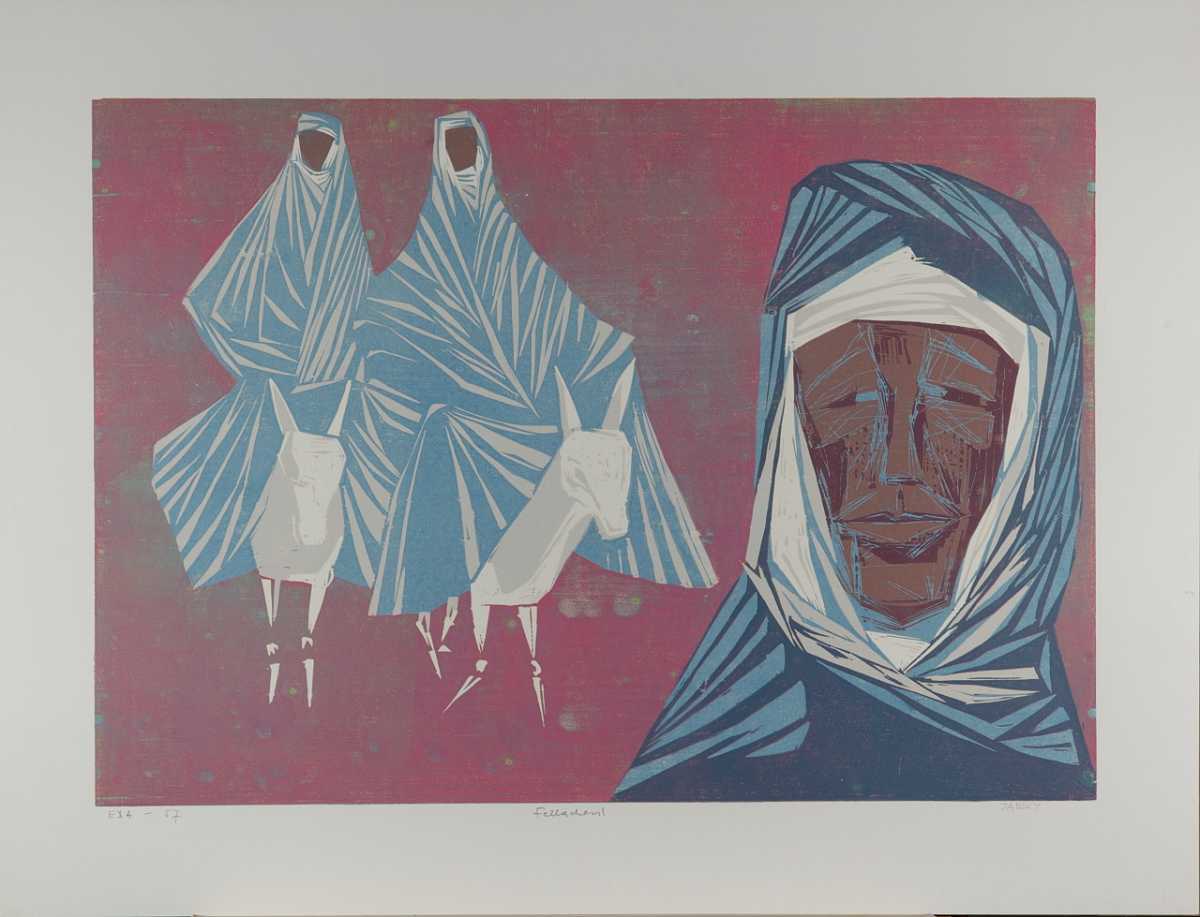 Farbholzschnitt, 85x65, Fellachen II, Nr.: 058