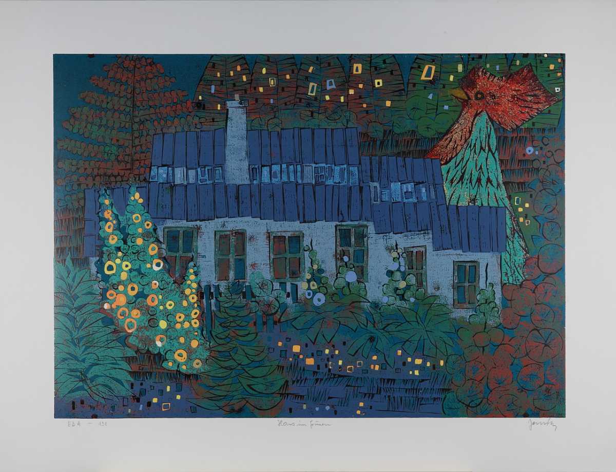 Farbholzschnitt, 65x85, Haus im Gruenen, Nr.: 138