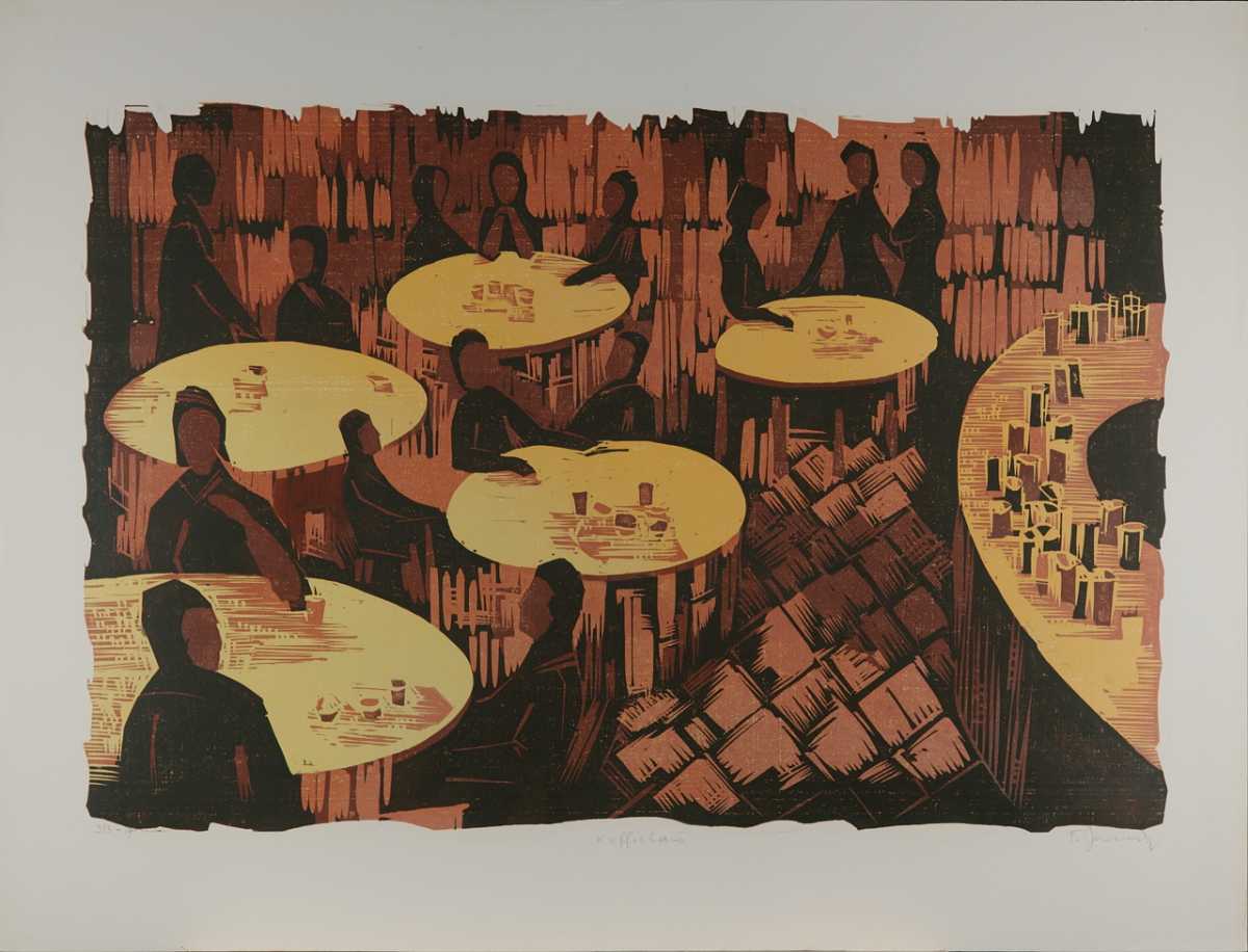 Farbholzschnitt, 65x85, Kaffeehaus, Nr.: 017
