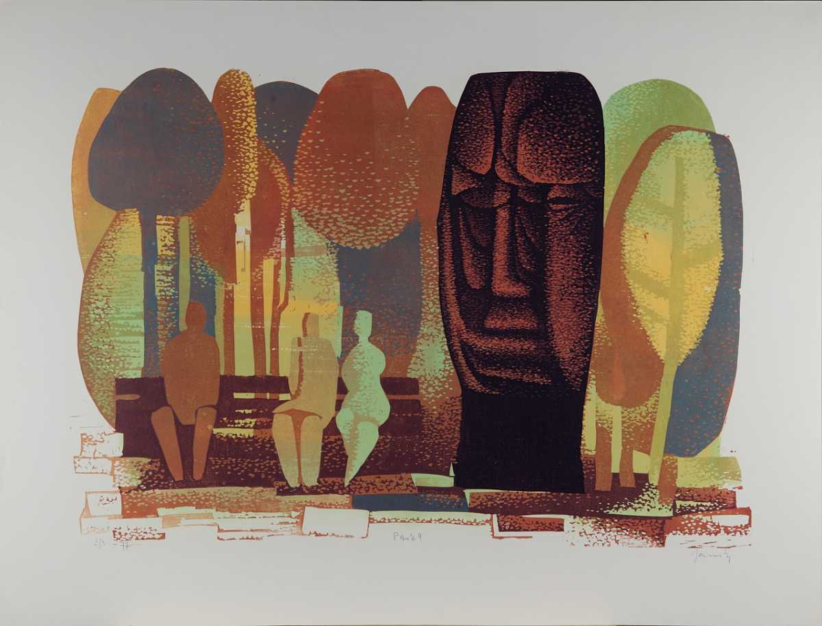Farbholzschnitt, 65x85, Park II, Nr.: 077