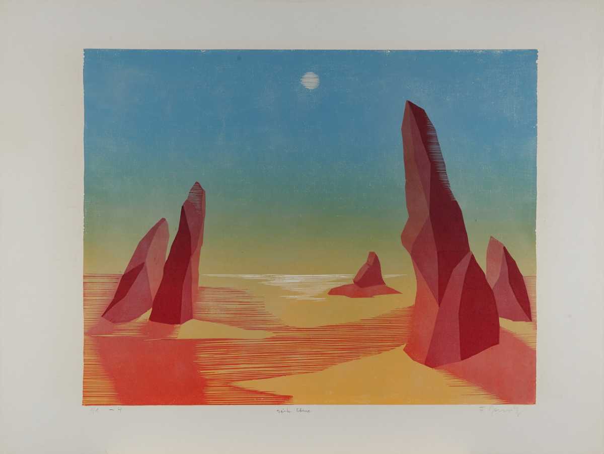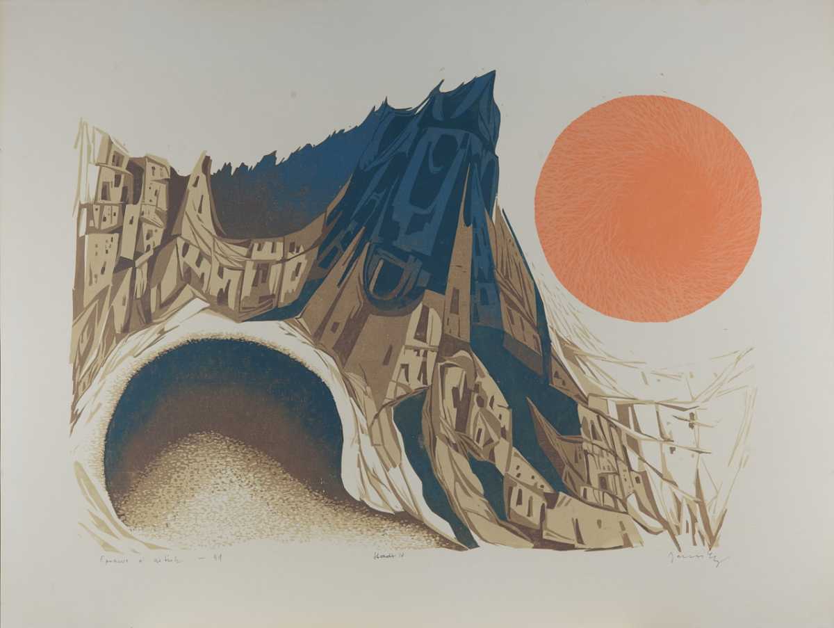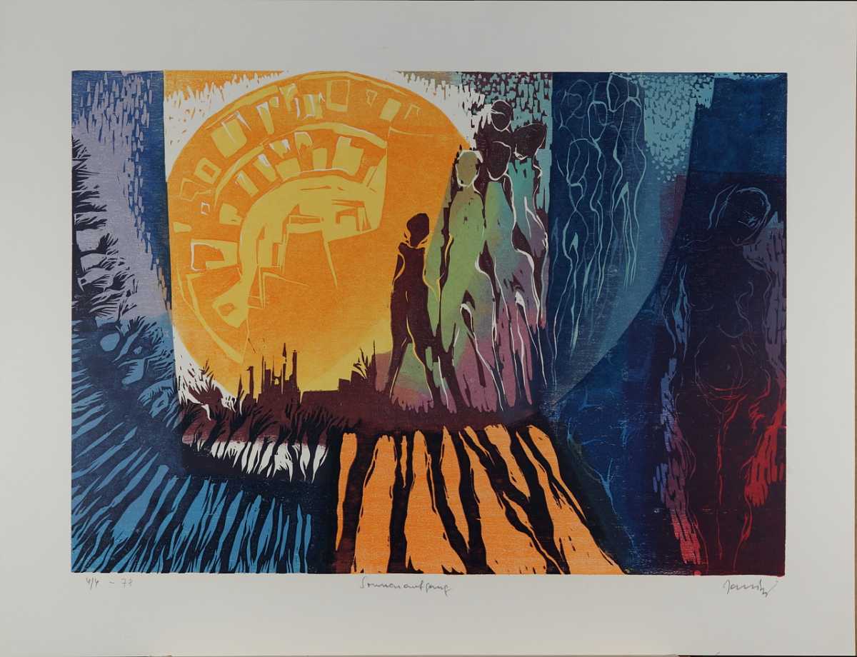 Farbholzschnitt, 65x85, Sonnenaufgang, Nr.: 078