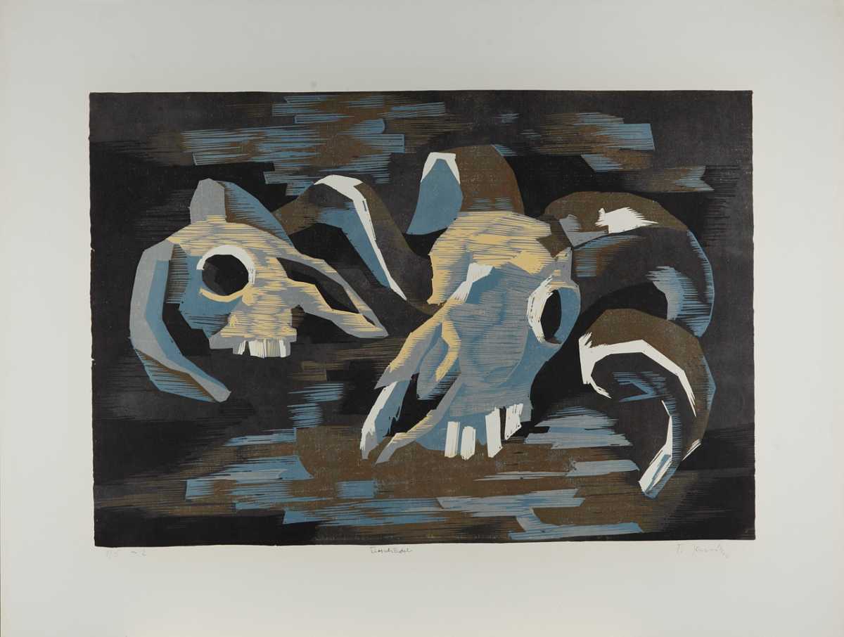 Farbholzschnitt, 65x85, Tierschaedel, Nr.: 002