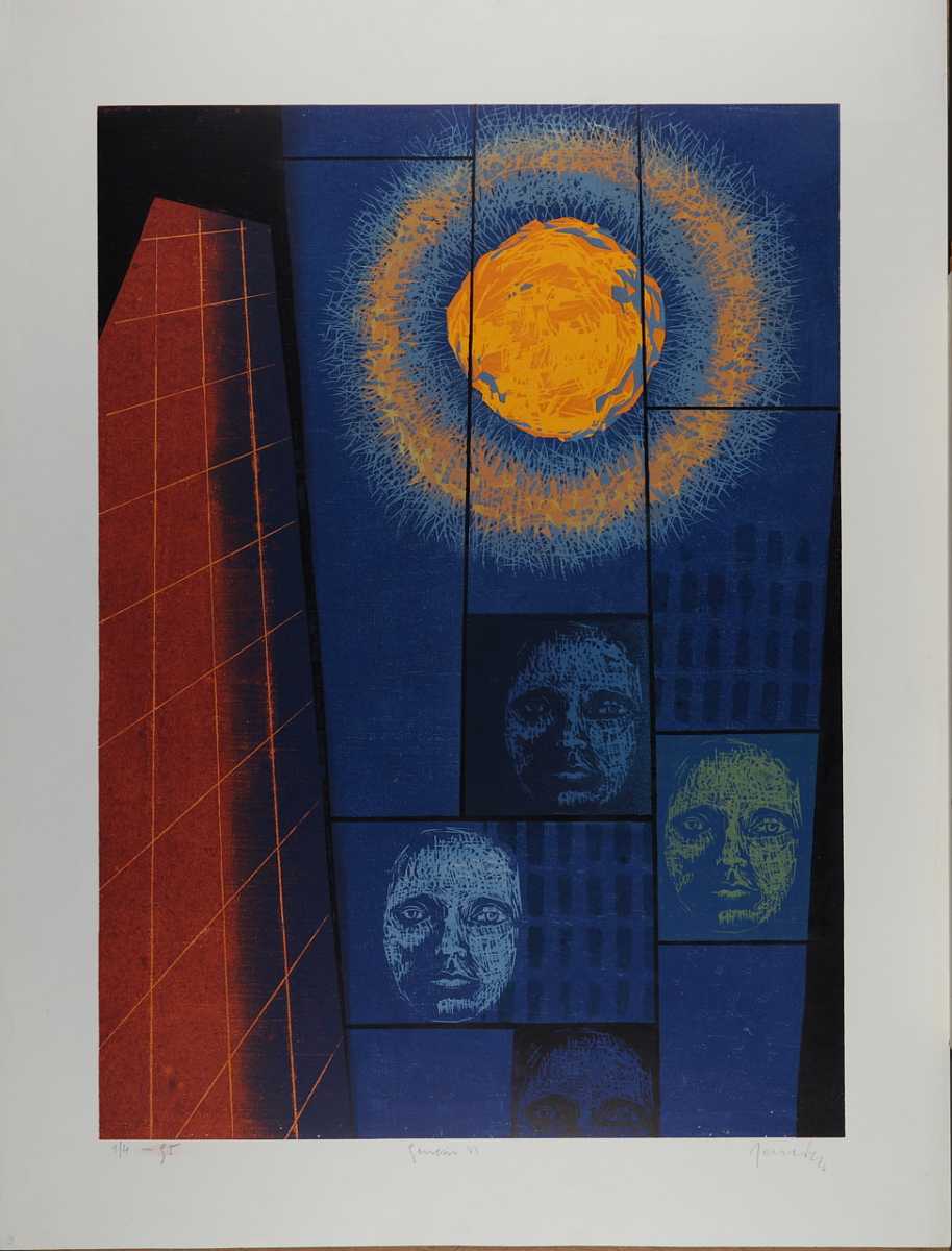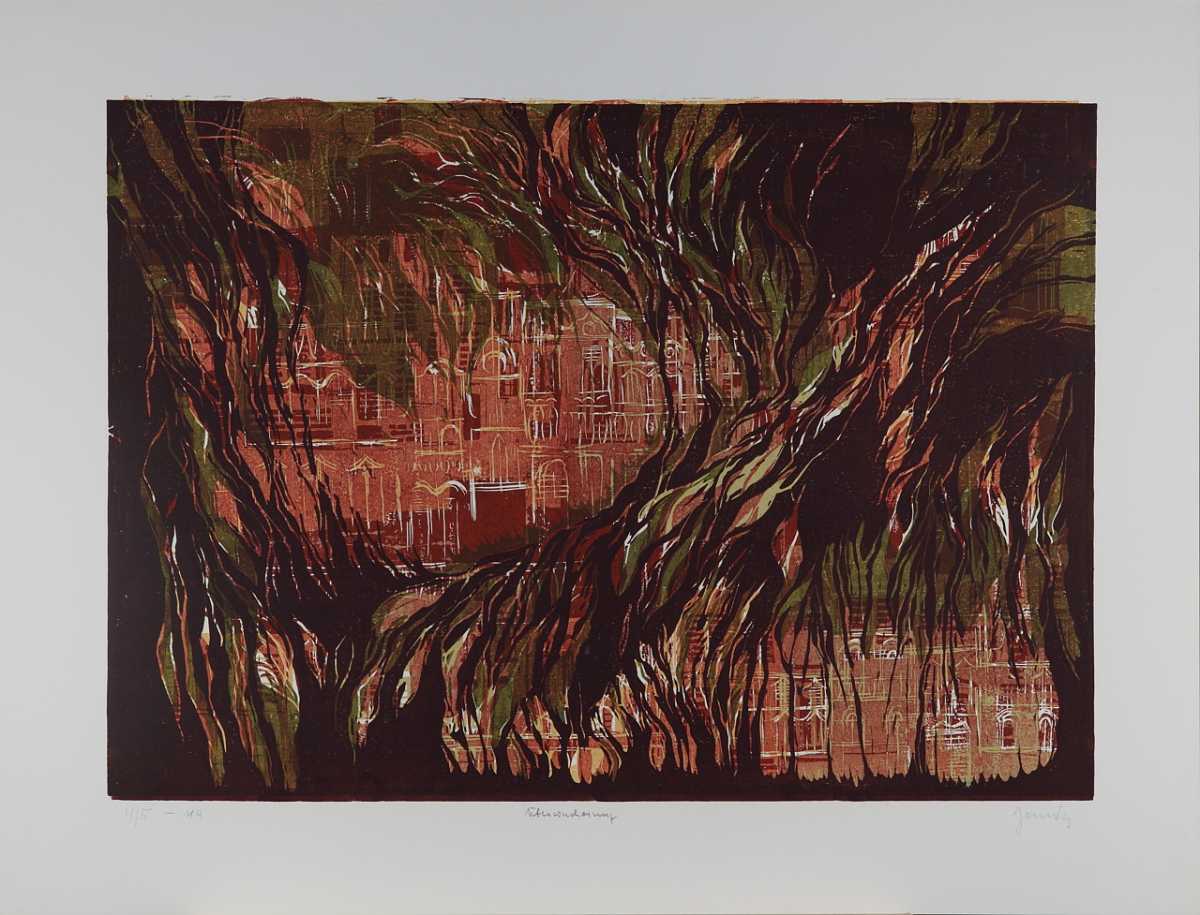 Farbholzschnitt, 65x85, Verlassene Stadt, Nr.: 109