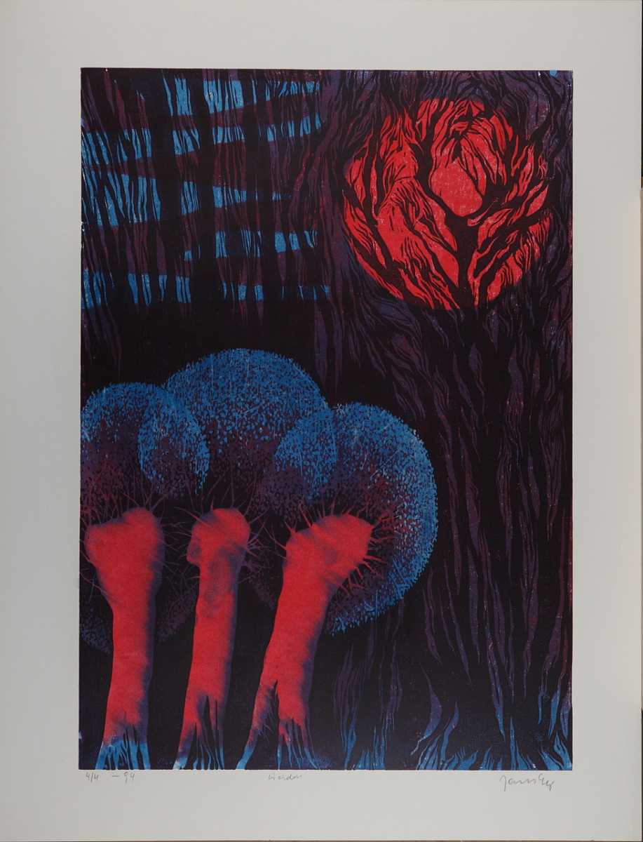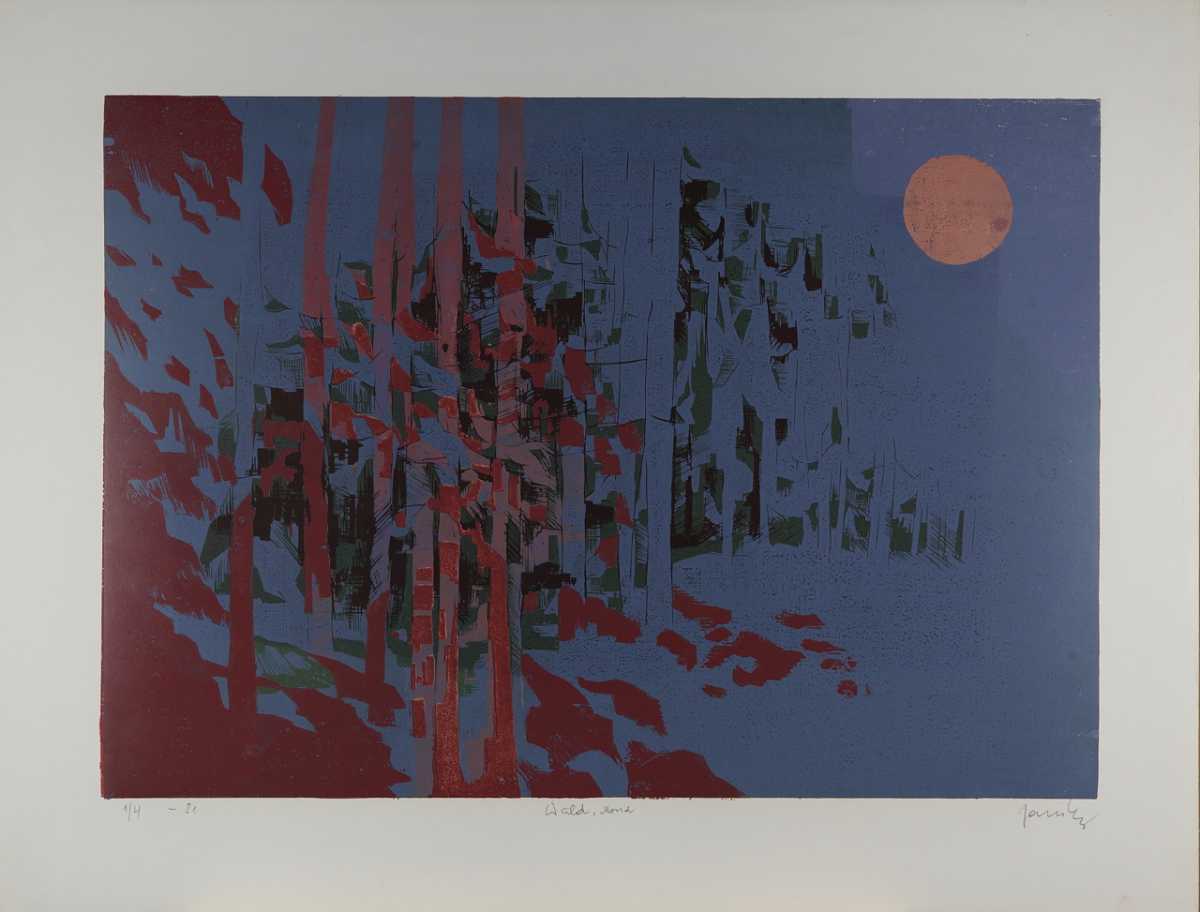 Farbholzschnitt, 65x85, Wald Mond, Nr.: 081