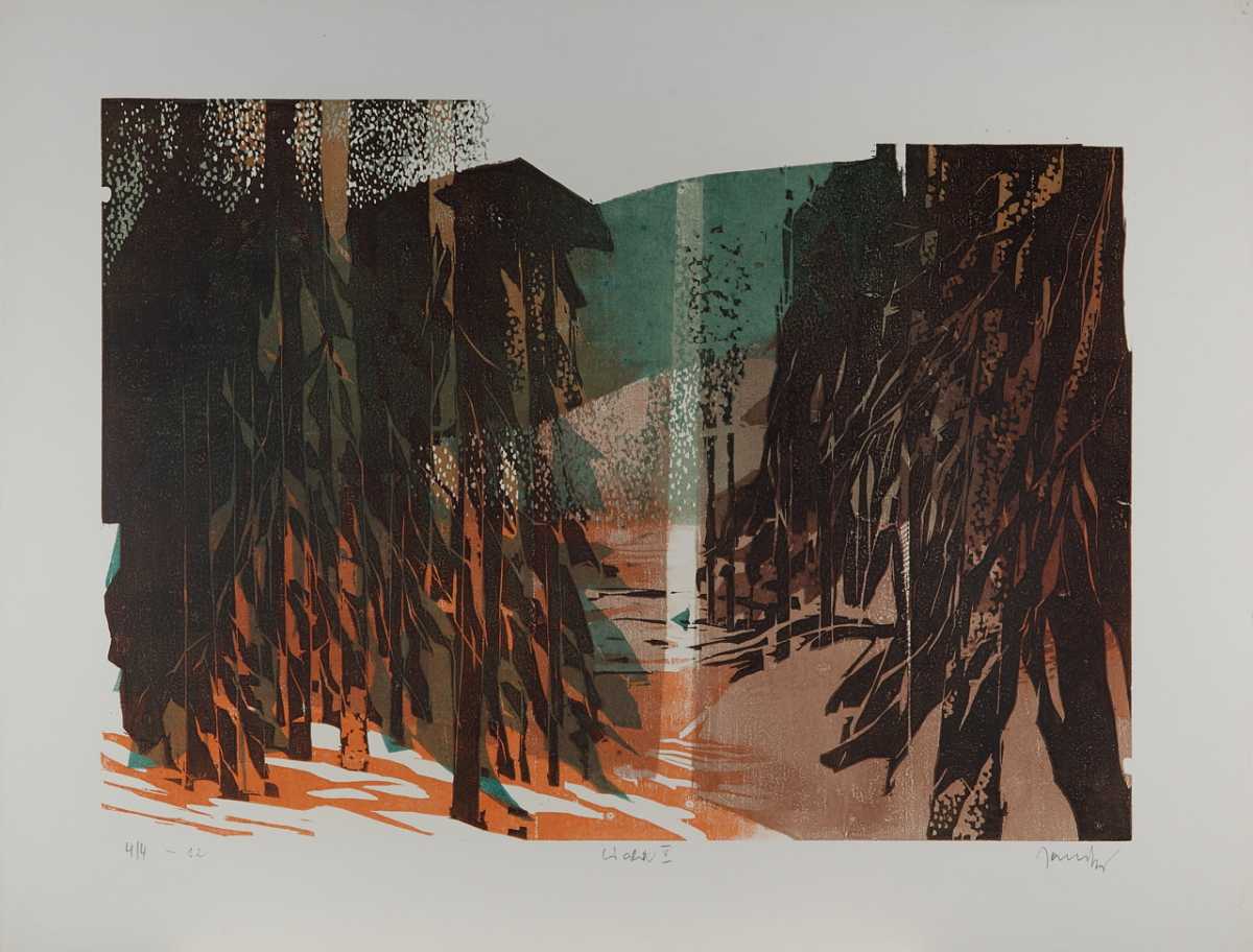 Farbholzschnitt, 85x65, Waldrand III, Nr.: 112