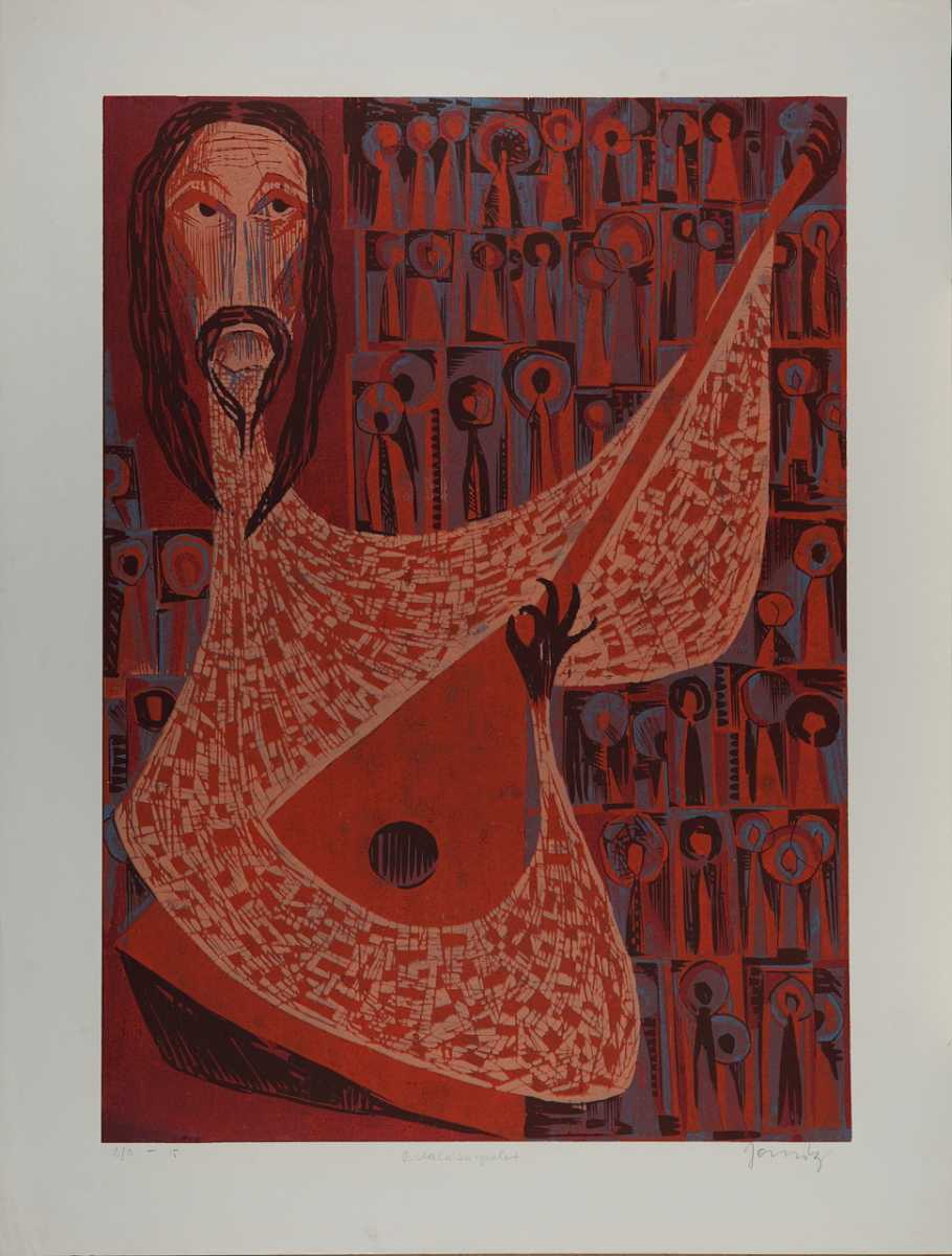 Farbholzschnitt, 85x65, Balalaikaspieler, Nr.: 015
