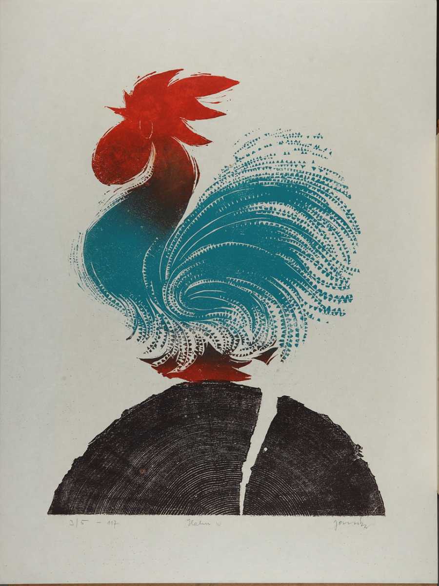Farbholzschnitt, 65x50, Melker Hahn, Nr.: 999