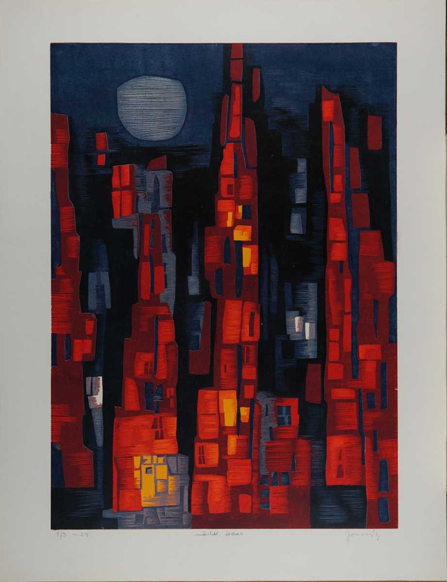 Farbholzschnitt, 85x65, Naechtliche Stadt, Nr.: 024