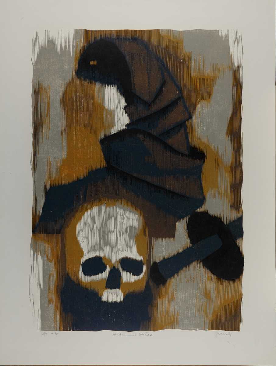 Farbholzschnitt, 85x65, Stilleben m Schaedel, Nr.: 010