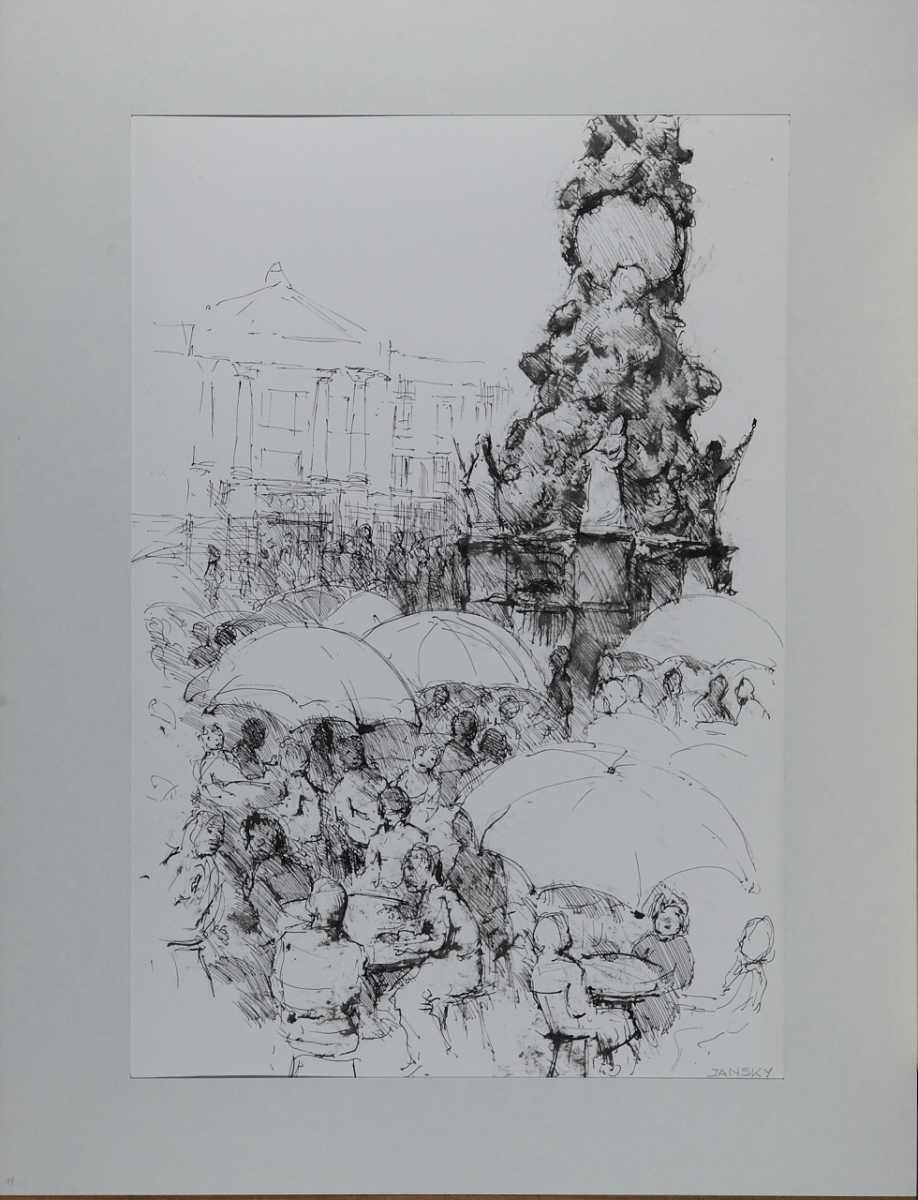 Tuschgrafik, 50x65, Baden Josefsplatz, Nr.: 040