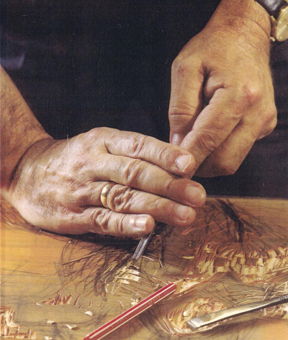 Schwarzweiß-Holzschnitte verlangen Vorausplanung, Ausgewogenheit und klare Konturen.